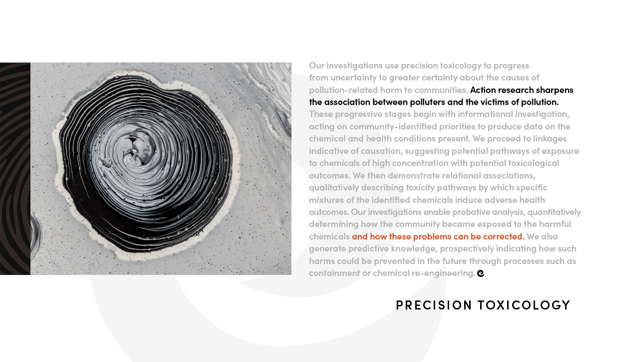 ENVIRONMENT CARE CONSORTIUM EC provides leadership in making the environment safe from chemicals and defending people's rights to a healthful environment. They use artificial intelligence to reveal statistical associations of pollution. They reveal toxic chemical "fingerprints" used as a legal forensics tool to strengthen environmental laws and bring polluters to justice.